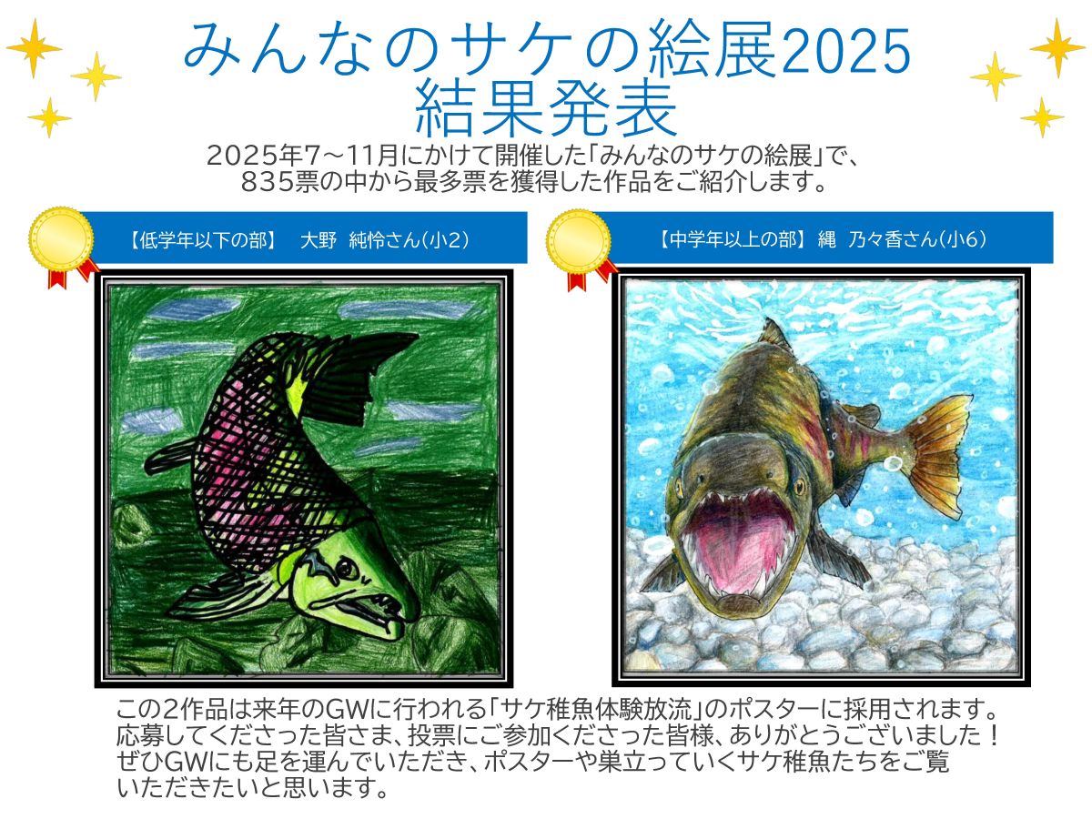 2025年7月から11月にかけて開催した『みんなのサケの絵展』において、最多票を獲得した作品を紹介します。