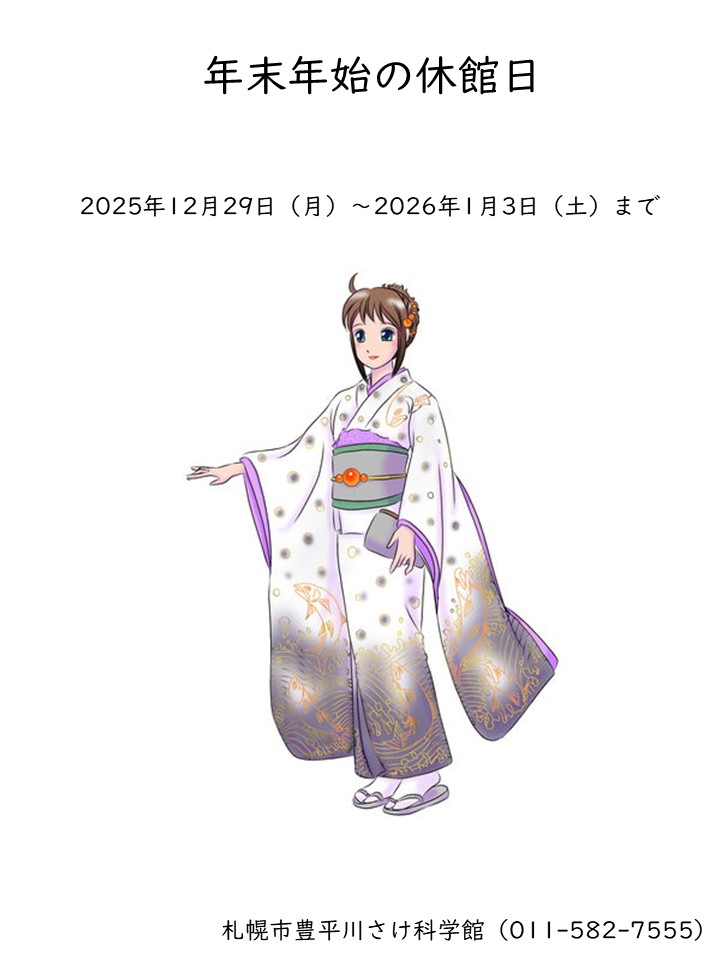 さけ科学館は、2025年12月29日(月曜日)から2026年1月3日(土曜日)まで休館いたします。
