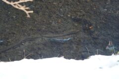 サケ 4月26日 中の川【場所】中の川の雪解け増水は濁りがとれて水がクリアーになりました サケ稚魚たちは流れの脇で流れがゆるいけど水通しのよいところでパクパク餌を食べていました